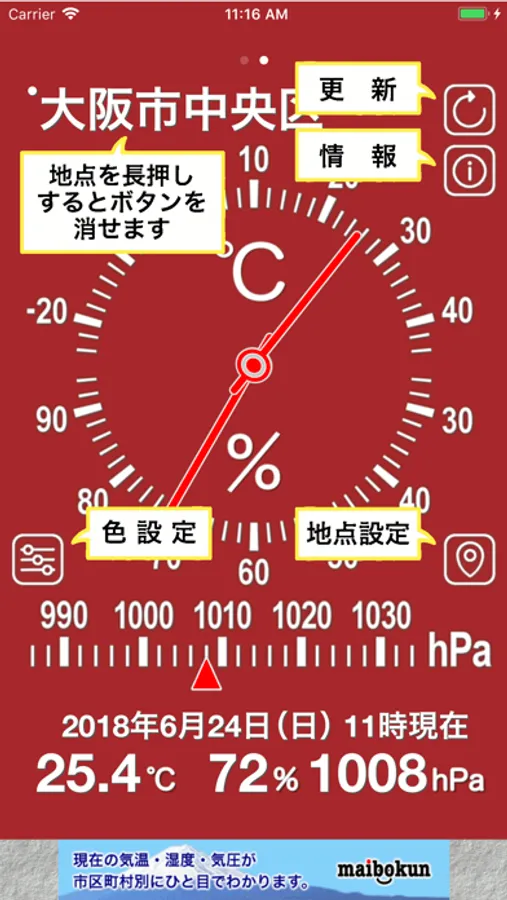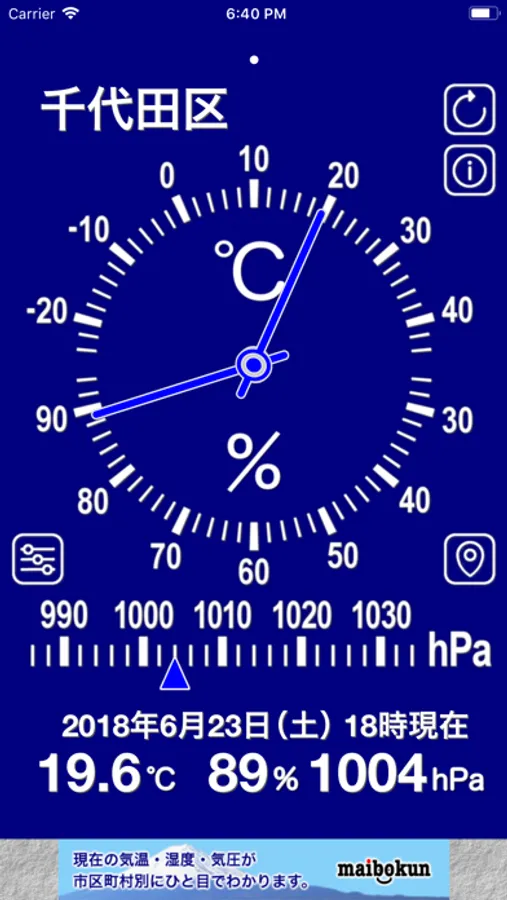 総合的に判断して、地点設定に登録した地点の気温・湿度・気圧を表示します。