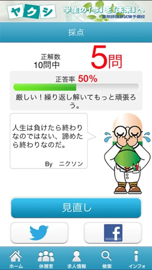 「見直し」ボタンを押せば、どの問題を間違えたのか一目瞭然です!