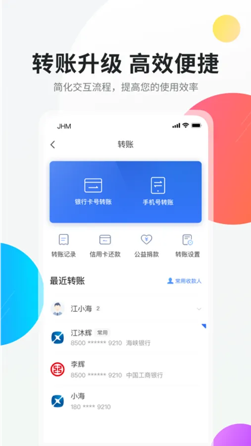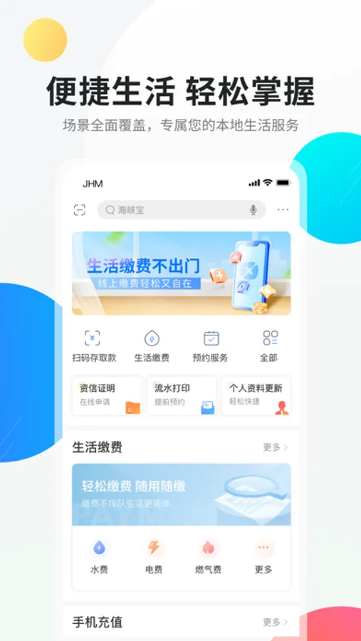 我行手机银行为客户提供账户查询、转账汇款、生活缴费、海峡宝等常用金融服务。