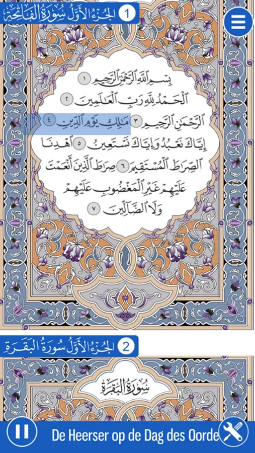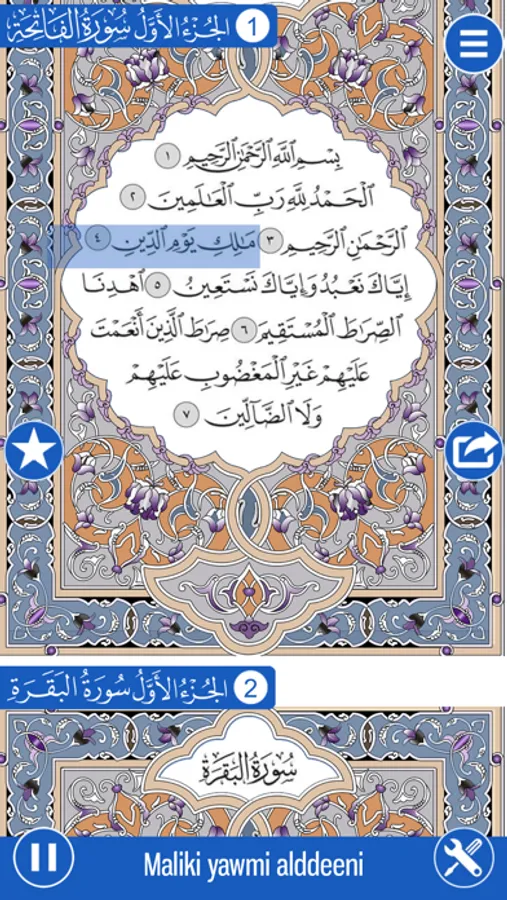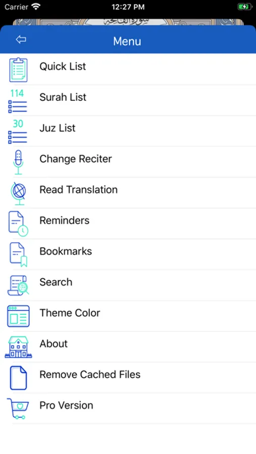 Surah Listing to quick jump to any Surah. Press i button with surah name to get list of all aya numbers in that surah and single tap to jump to specific ayah.