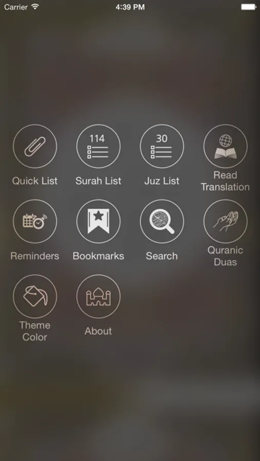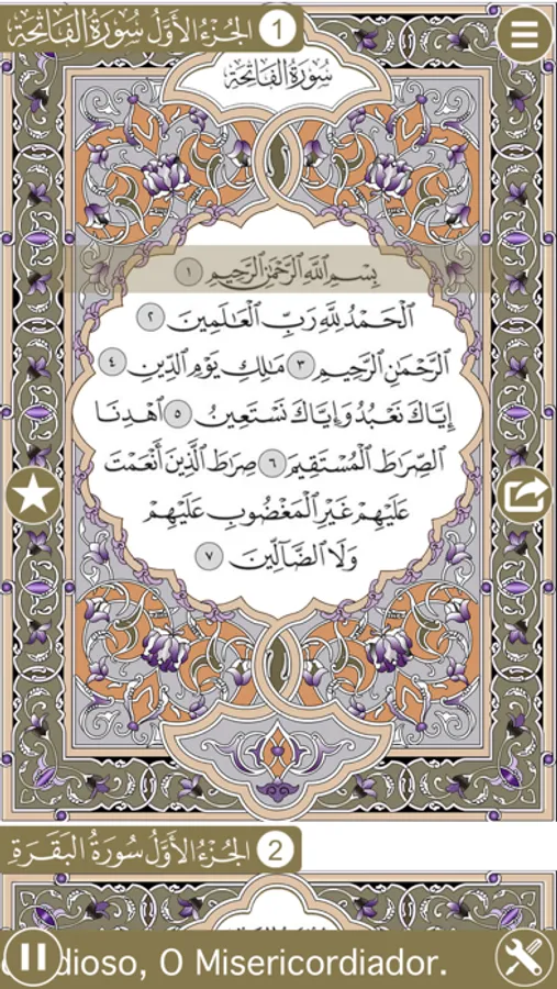 Tapping on Surah name will bring a surah list to choose from. Tapping on i button in front of surah name will bring all ayah numbers in that surah to quickly open from specific ayah.