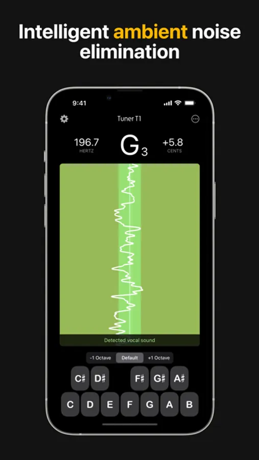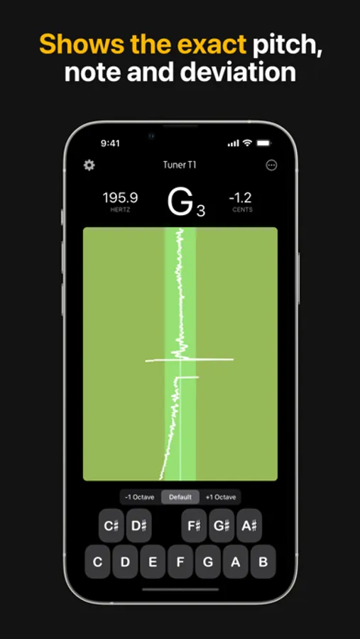 • Live pitch graph displays the exact pitch, note and deviation in realtime.