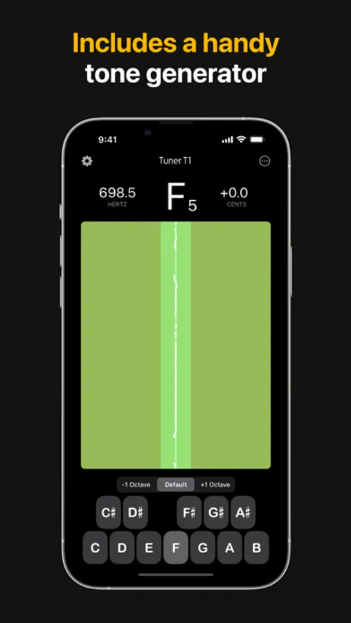 Tune musical instruments (guitar, violin, viola, bass, piano, cello, flute and many more) with this simple chromatic tuner. Tuner T1 Pro also comes with a handy Tone Generator that plays any musical note as reference for tuning. A must-have tool for musicians.