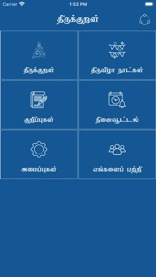 -Support for sharing the Kural in social media (Facebook, Twitter, Whatsapp)