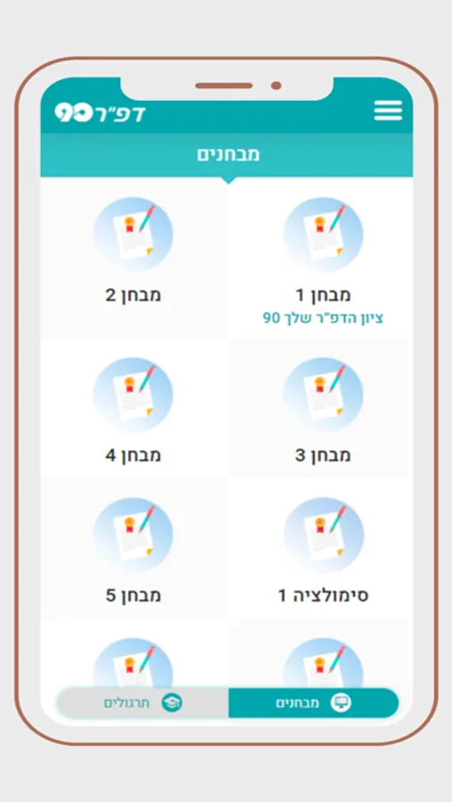 פלטפורמת דפ"ר90 הינה פלטפורמה דיגיטאלית וידידותית שמטרתה - הכנת הנוער לקראת הצו הראשון, באופן יעיל ומקצועי. בפלטפורמה יש הכנה לצו ראשון בחינם שבתוכה כלול מבחן צו ראשון לדוגמא. אם תרצו ללכת על זה בכל הכוח תוכלו גם לרכוש את מנוי פרימיום להכנה צו ראשון.