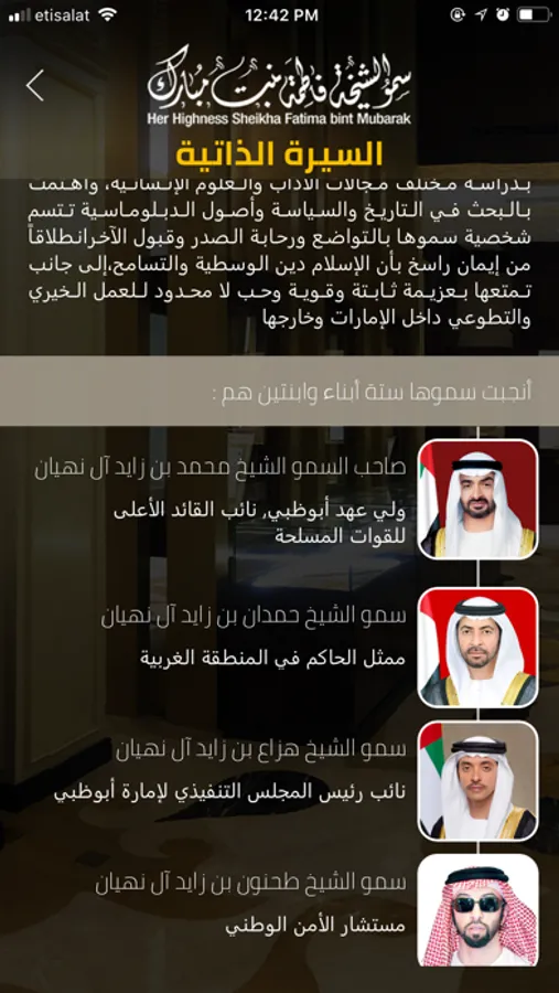 أدركت سمو الشيخة فاطمة بنت مبارك أهمية العلم، لذا عمدت إلى دراسة القرآن وتفسيره وأصول الفقه والحديث النبوي الشريف، كما شغفت بدراسة مختلف مجالات الآداب والعلوم الإنسانية، واهتمت بالبحث في التاريخ والسياسة وأصول الدبلوماسية.