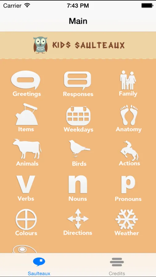 Saulteaux Language App teaches you how to speak the Saulteaux Language. Learn to speak from the spoken word. More than 500 words and phrases, combine words from various categories to make sentences.