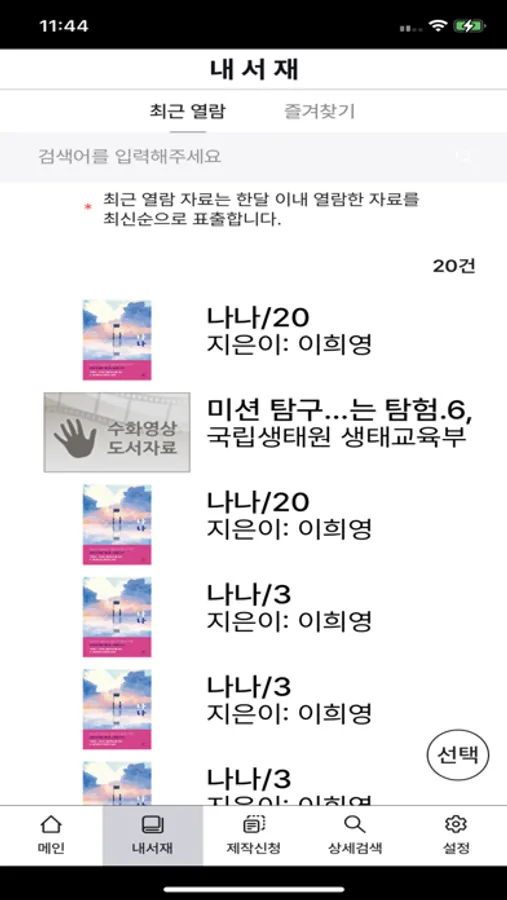 수어영상도서를 선택하면 스피커를 통해 흘러나오는 소리를 손짓 언어인 수어로 설명합니다.