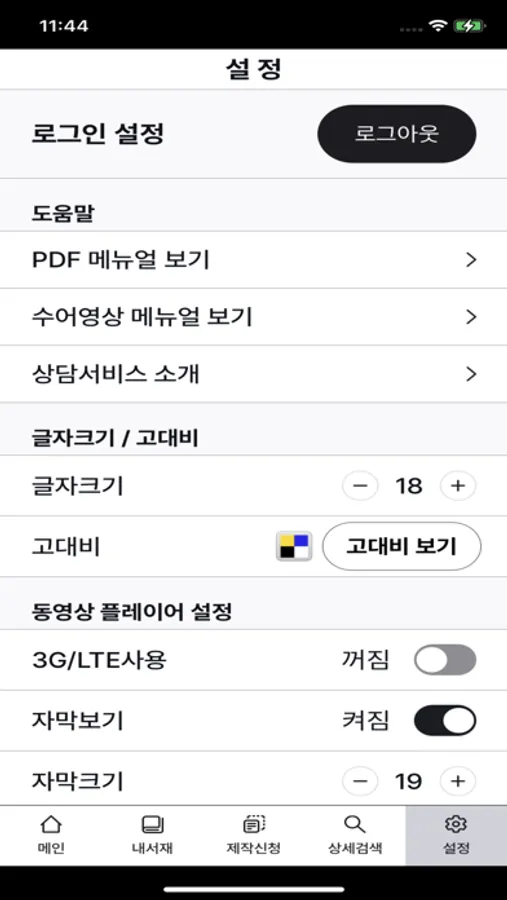 - 2,250여편의 수어영상도서/자막영상 동영상 자료 제공