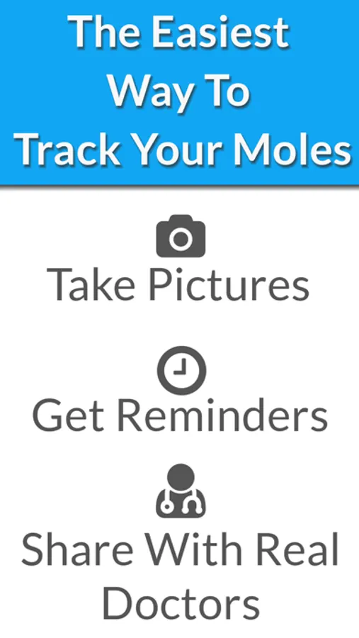 You take pictures of your moles and we store them on your device along with dates and other information. We never upload or save your information anywhere else. It's your health data, and only you should own it.