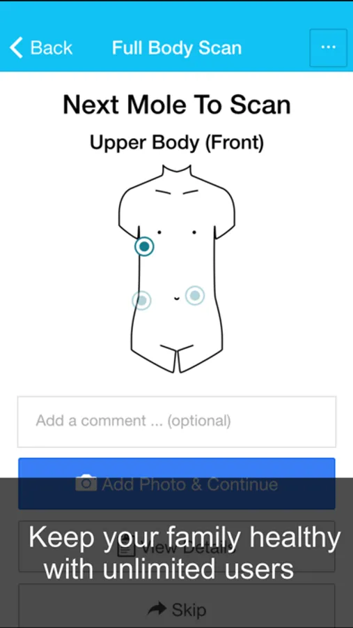 Check your moles and those of your family members directly from the same app.