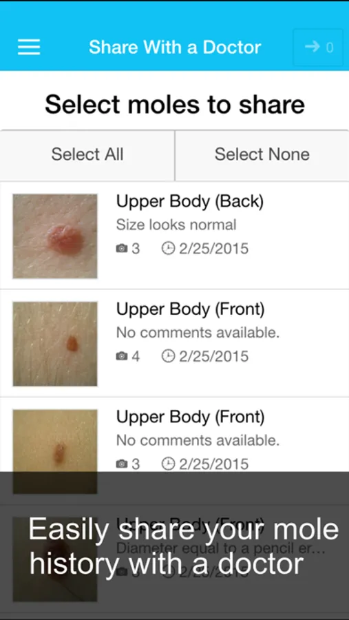 If you find a mole that concerns you, you can quickly share your mole history with a dermatologist near you.