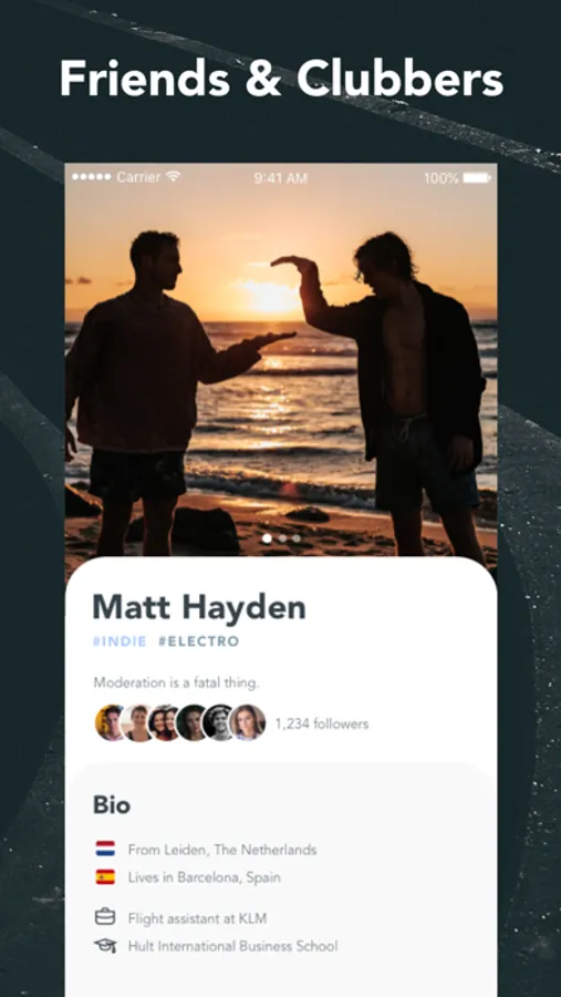 • All the parties and events happening in each city or club, according to your musical tastes and ambiance, proximity and friends attending.