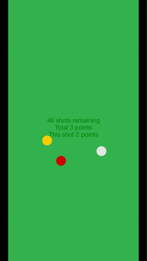 To take a shot, just tap a spot and the cue ball will be shot towards that spot. Aim carefully to hit as many cushions as possible. Shake your device to start a new game. Each game is 50 shots.