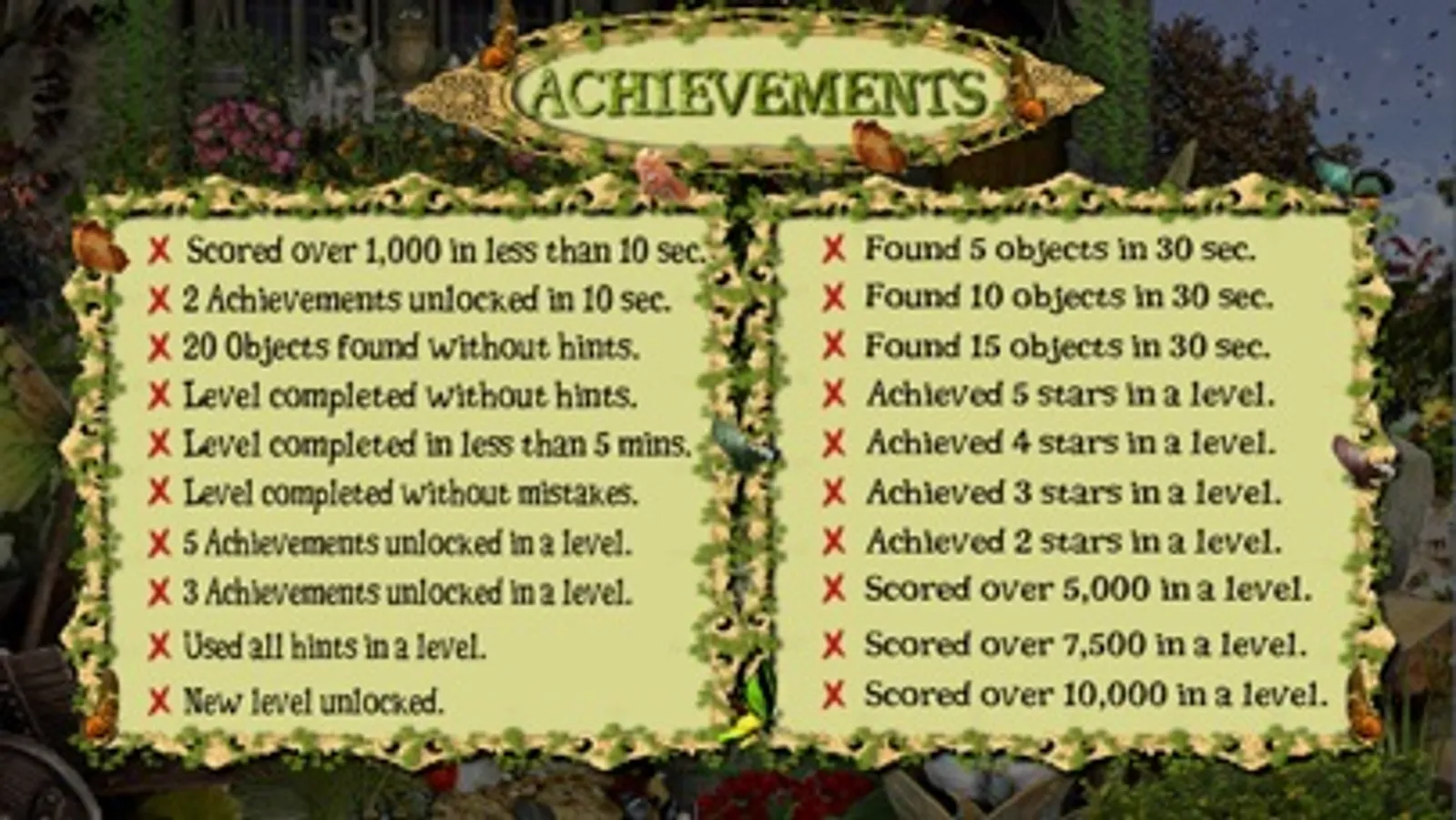 We do not bore users with pointless stories that distract them from the goal of unlocking achievements and finding objects and of course, we don’t force users to make in-app purchases in order to keep playing, your only task is to find objects and we have hint feature for free to help you.