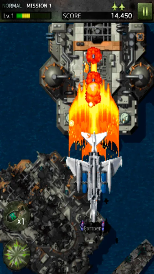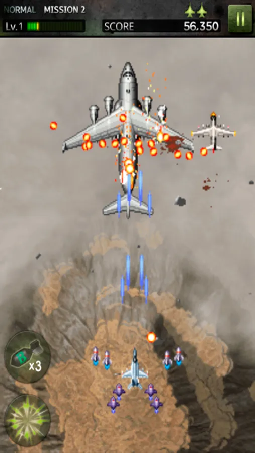 Bomb button touch: Fire a bomb to block enemy fire for some time.