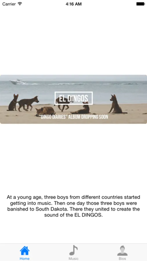 Keeping up with everything El Dingos has been made easy at the palm of your hand. The official El Dingos app comes with a few of the band's greatest recordings. The home page keeps the user informed on the newest El Dingos activity. The bios page keeps a profile on every band member and their story. This product is aimed to keep the El Dingos' fans up to date and more connected with the band.