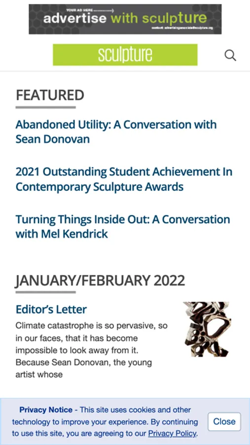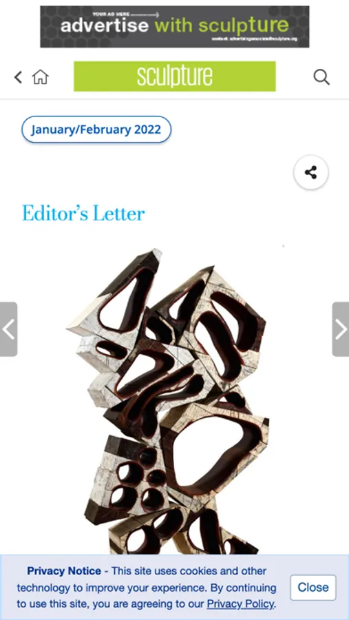 A publication of the International Sculpture Center, Sculpture magazine is the essential source of information and dialogue on all forms of contemporary sculpture internationally. You can find our not-to-be missed coverage of contemporary sculptural art – from features, interviews with artists, reviews of current shows and other art criticism, to thought-provoking essays – in print and digital magazine, which is published six times per year.