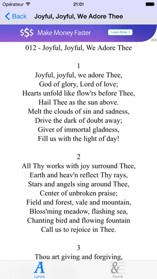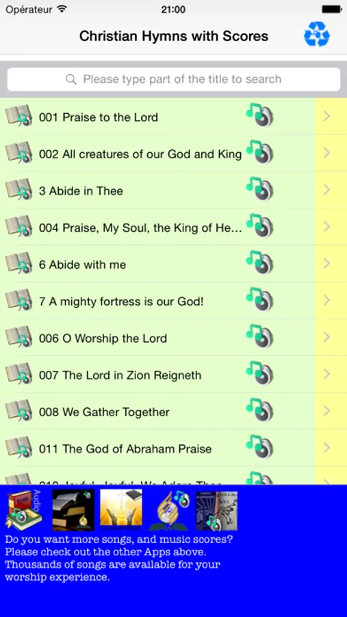 Worship Scores Lyrics & Tunes, is a sample App containing popular hymns lyrics, musics and scores for Free.