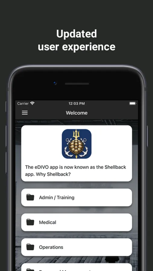Shellback, formerly known as eDivo, is a free mobile app developed to support US Naval Surface Force (SURFOR) personnel in an easy-to-access offline environment.