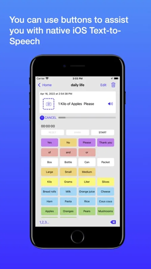 Each button can contain more text than is printed on the label. For example a button labelled "C-Milk" might log "Delicious Chocolate Milk" to the event.