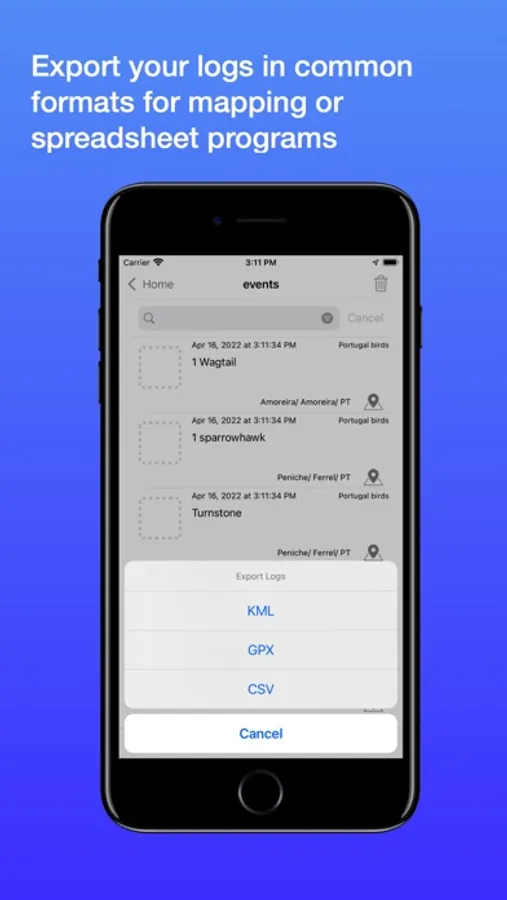 Once you construct a keyboard you can use it to record events that you are interested in with a minimum of friction. Each event is tagged with time and location and can be output in several well known formats; KML, GPX and CSV.