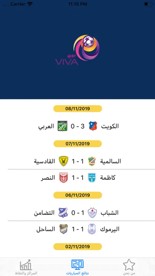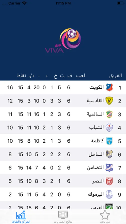 اول تطبيق كويتي متخصص بالدوري الكويتي يقوم بعرض جميع المباريات القادمة والنتائج السابقة والحالية أولا بأول ..