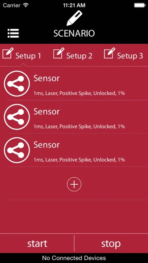• The scenario mode enables you to combine different sensors to create custom scenarios to be executed sequentially. Each scenario can contain up to five steps to be executed and you can store up to three different scenarios.
