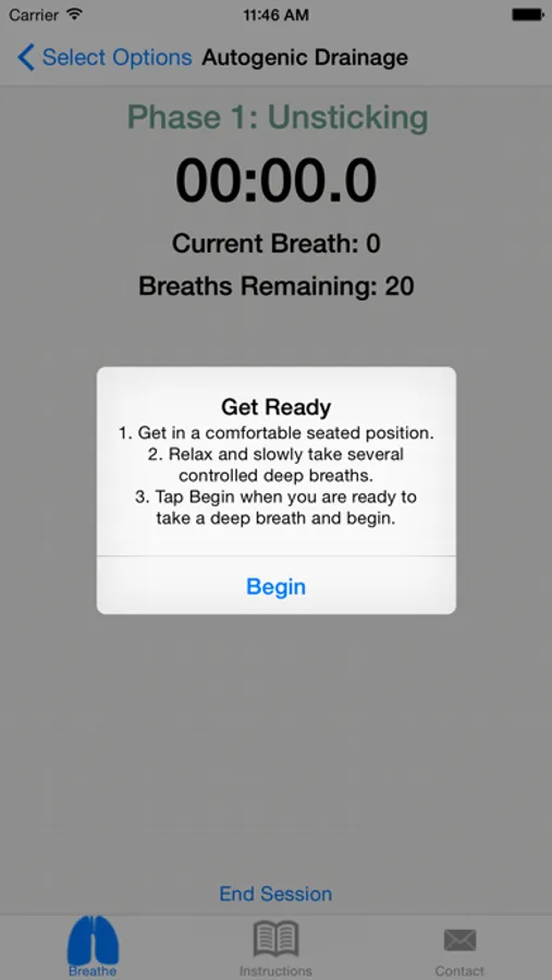 The Autogenic Drainage app provides a customizable timer with voice commands to aid in doing autogenic drainage. Autogenic drainage is a breathing exercise that is used to clear mucus from the lungs in people with lung disease. Autogenic drainage requires no equipment and is done entirely through controlling your breathing.