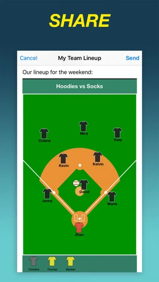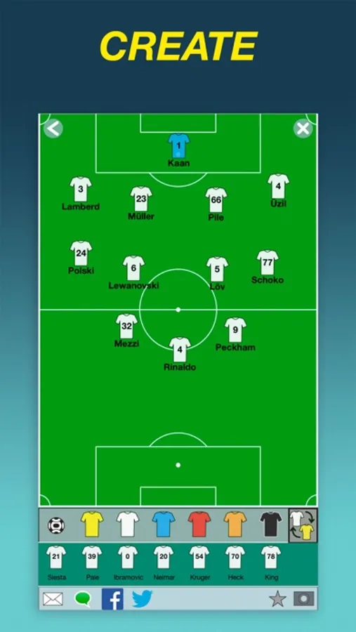 • Share your starting lineup via Email, Twitter, Facebook, WeChat, WhatsApp, and other social media channels