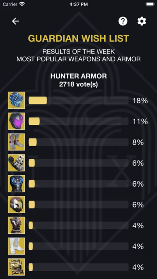 - Guardian Wishlist: The classic feature is back and better than ever! You can now see the votes being cast in real time and see the percentages for all items; not just the item with the most votes.
