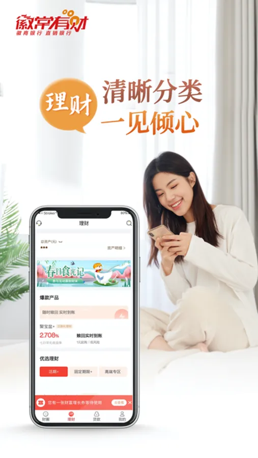 无论何时,无论何地,只要您想,您就可以拿起手机或者打开电脑,登录徽商银行的直销银行,徽常有财就能够为您提供随时,随地,随心的服务。