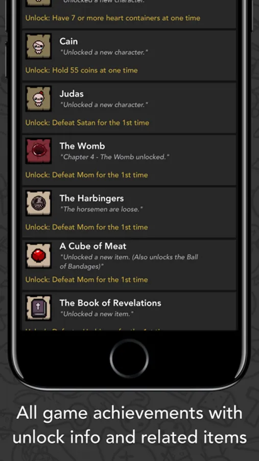 This app is not associated, affiliated, endorsed, sponsored, or approved by Edmund McMillen or Nicalis Inc.