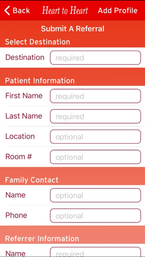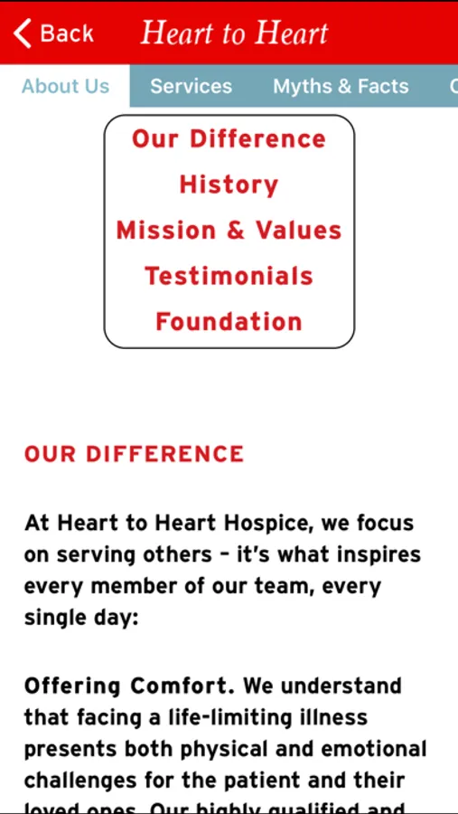 Use our App to learn about Heart To Heart Hospice services, see our facilities, and make a referral. With our new App we can accept referrals for any of our locations by simply selecting where you are. You can make a phone call to our intake team or fill out the referral form.