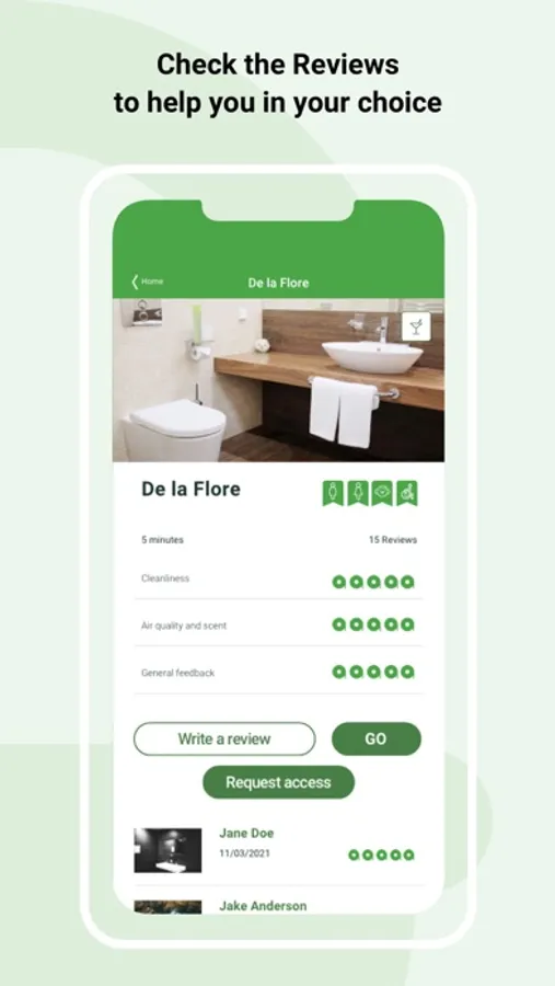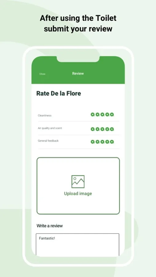 In addition to a review to rate the cleanliness, air quality, and scent of the environment, you can also leave general feedback and report any fees as well as the availability of accessible toilets and of baby changing units for mothers with small children.