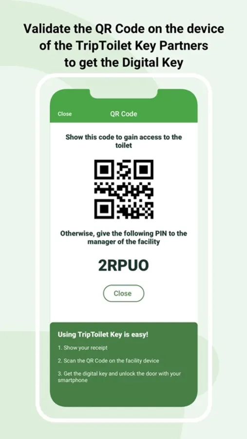 The TripToilet KEY service allows you to autonomously access the toilet using the digital key received on your smartphone through the validation of the TripToilet partner’s device.