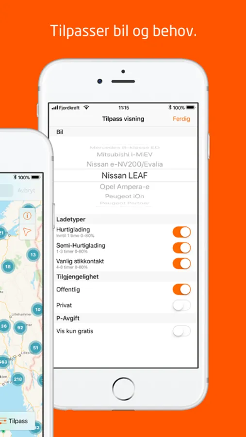 - Kan tilpasse biltype, tilgjengelighet, ladetyper.