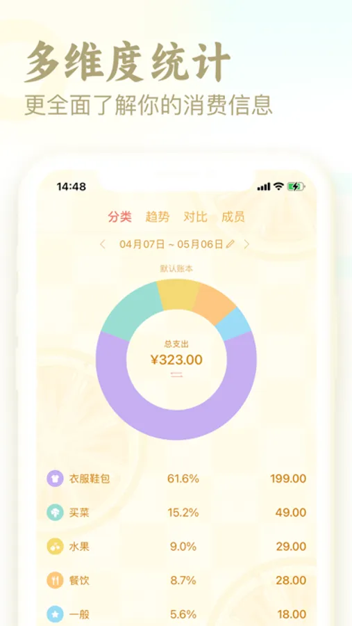 3、支持多账本:分账本记录公司账、装修、旅游、报销、结婚等;