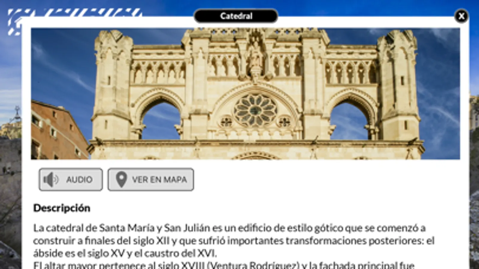 Intuitiva y fácil de utilizar, la aplicación te muestra información de los lugares más atractivos de Cuenca simplemente ampliando la imagen con tus dedos y picando sobre los puntos de interés y sus etiquetas.