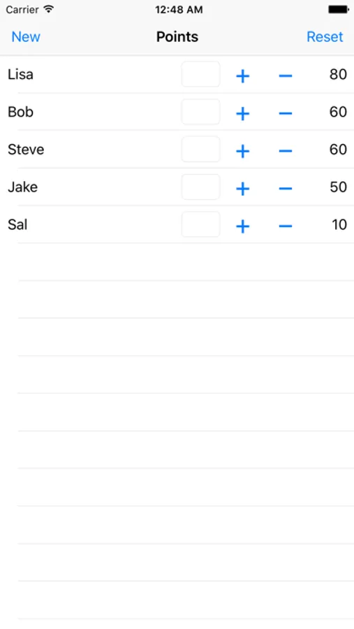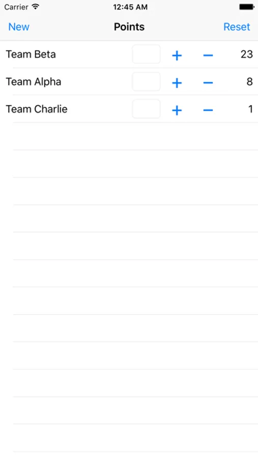 A simple and interactive scoresheet. Perfect for anything from a football tournament to darts or a game of cards. Points keeps track of your score and presents a beautiful score table for any occasion.