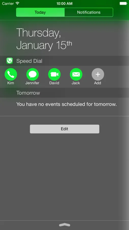 * Drag down the Today screen and click "Edit" to add Speed Dial Widget to the list.
