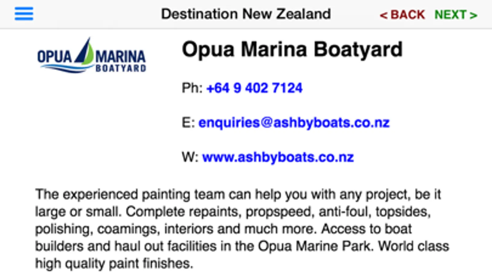 This app is broken up into three sections, each containing a wealth of useful information on cruising to, arriving at and carrying out maintenance while in New Zealand.