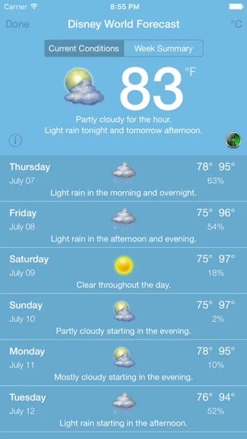 - A 7 day forecast of the weather at Disney World with radar Image map