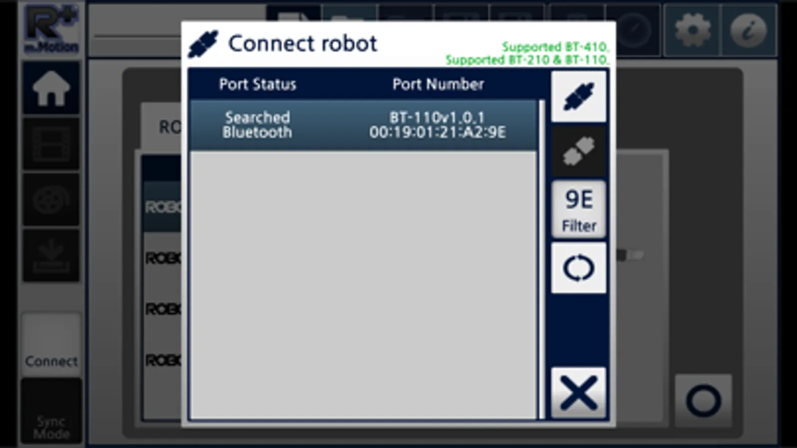 Attach a Bluetooth module onto the robot controller (either BT410) then connect the robot to the mobile device via Bluetooth communications. Then, edit and download motion files (Note: download only available for CM-200, CM530, and OpenCM C-type).