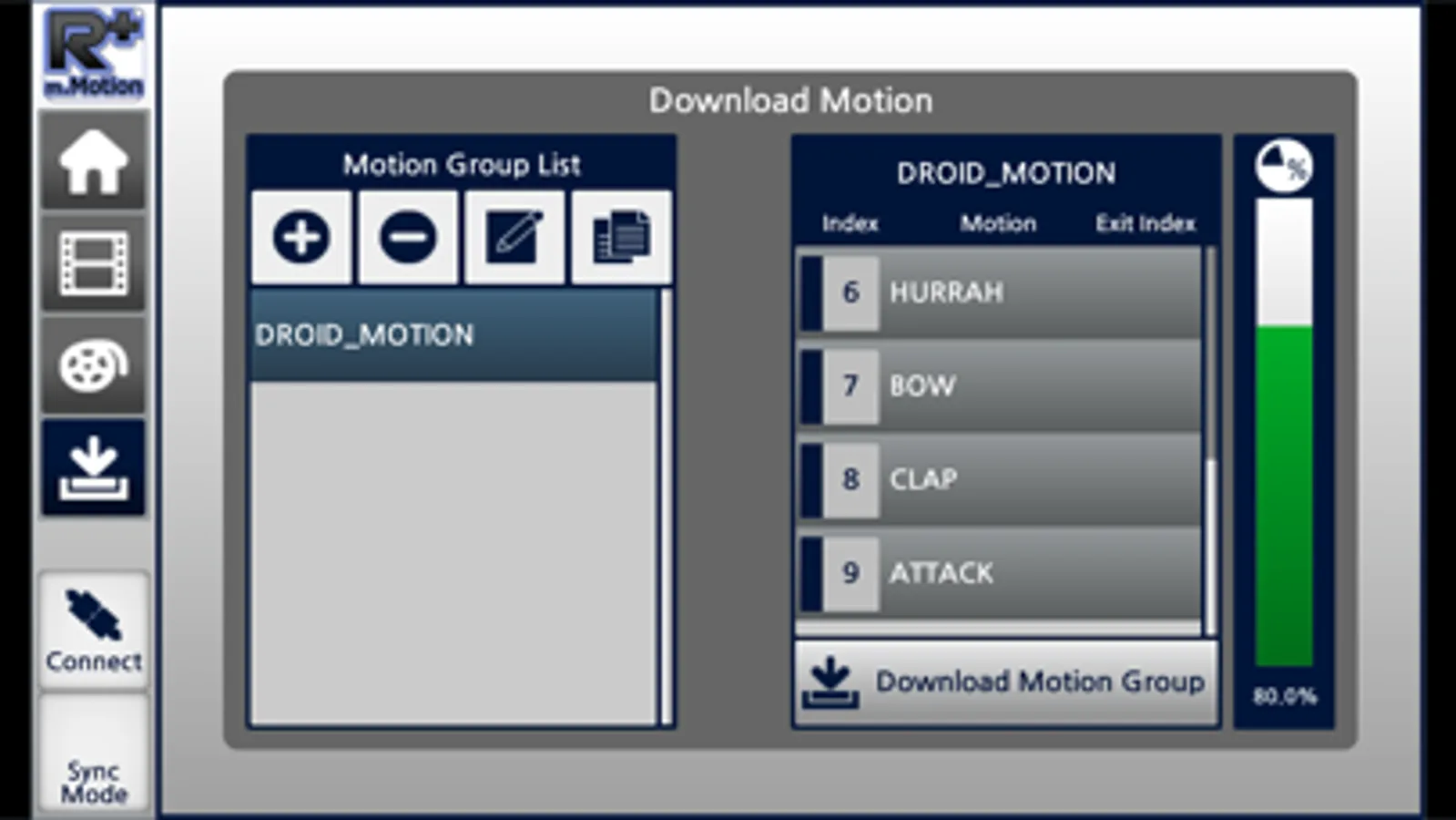 The mobile version of R+ Motion is just like the computer version with support for motion file creation, editing, and download.
