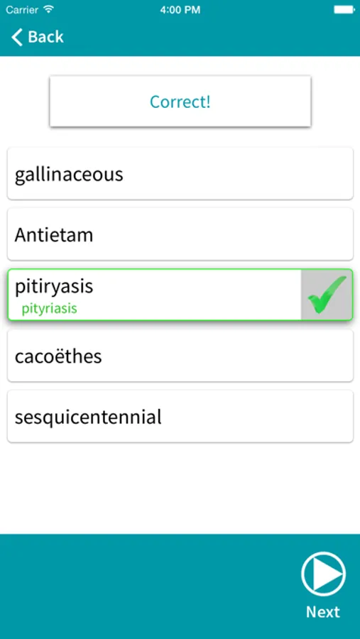 Select the incorrectly spelled word from a group of five words and type in your spelling. Incorrectly spelled words stay in the mix until you have spelled them correctly. Track your progress as you go. A fun and convenient way to learn the words for the High School UIL Spelling & Vocabulary contest.