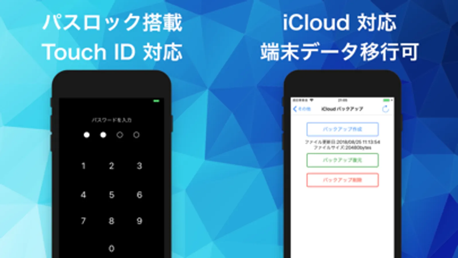 ・パスワードロック機能搭載(touchID指紋認証対応)