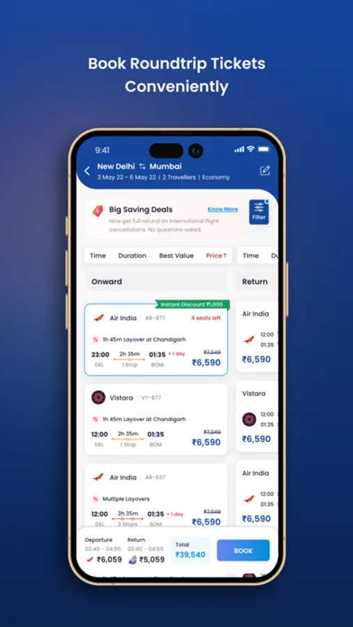 - Book through the app and eliminate the necessity to fill your travel information and credit card details again.