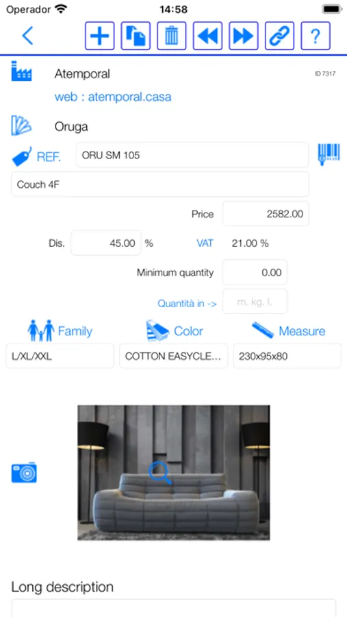 discount and VAT, there is also a button to add to the description, a description longer if we