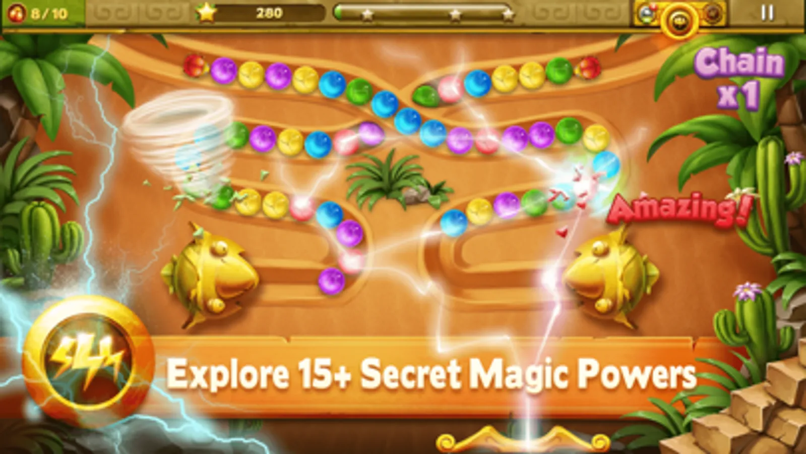 Stone Shooter of Jurassic is immaculately presented with 100 levels in great design, from dessert to Iceland Frozen Peak with difficulty levels ranging from east to seriously hard. There are also two primary modes of play: Adventure and Challenge. Adventure mode takes players through the 100 levels on four wonderful maps, while Challenge mode offers endless-gameplay with completed levels unlocked in Adventure mode.